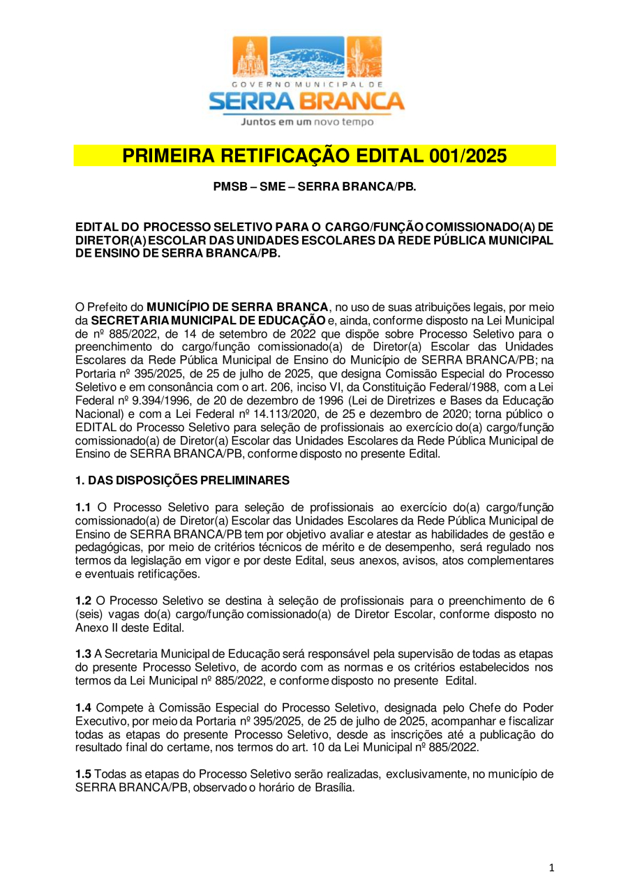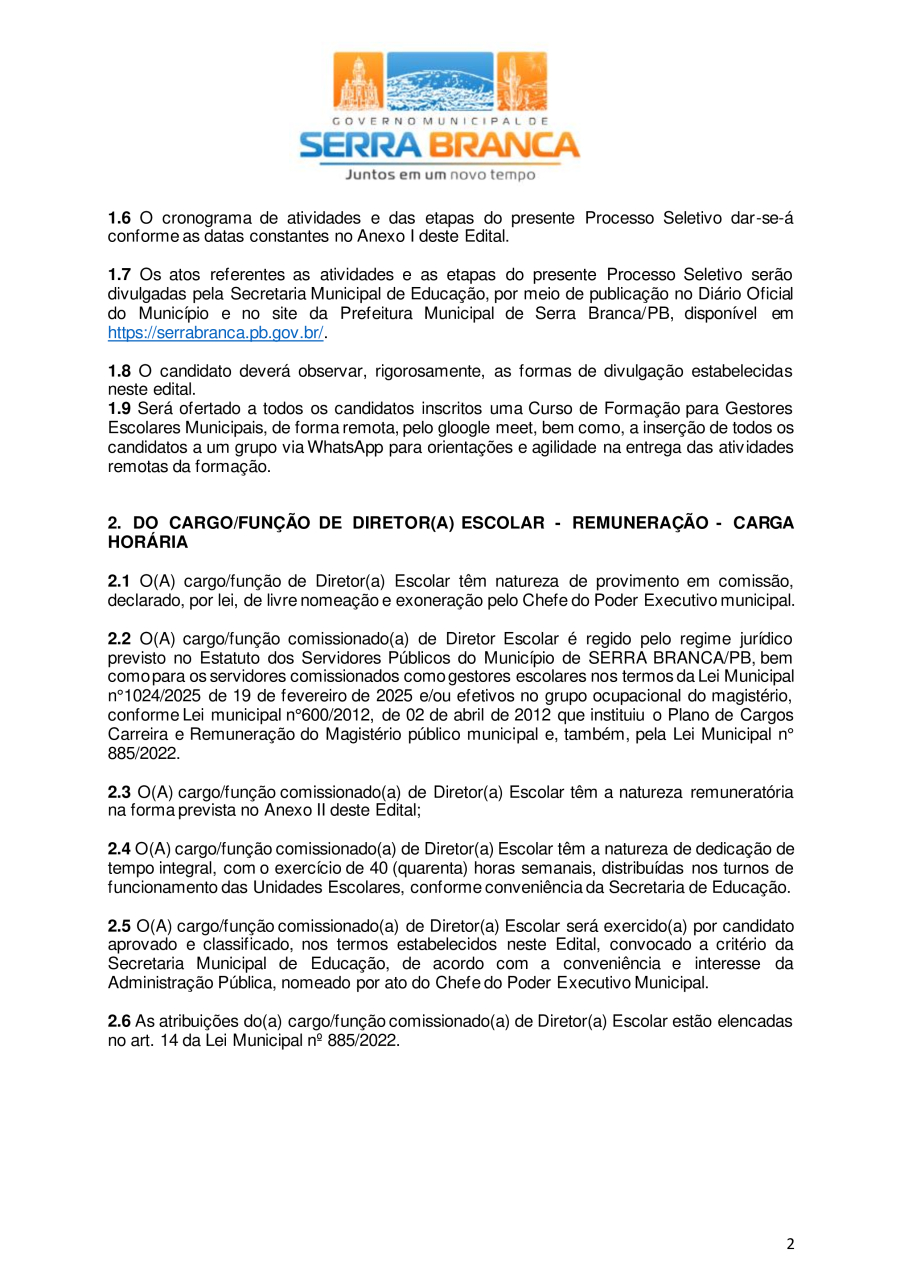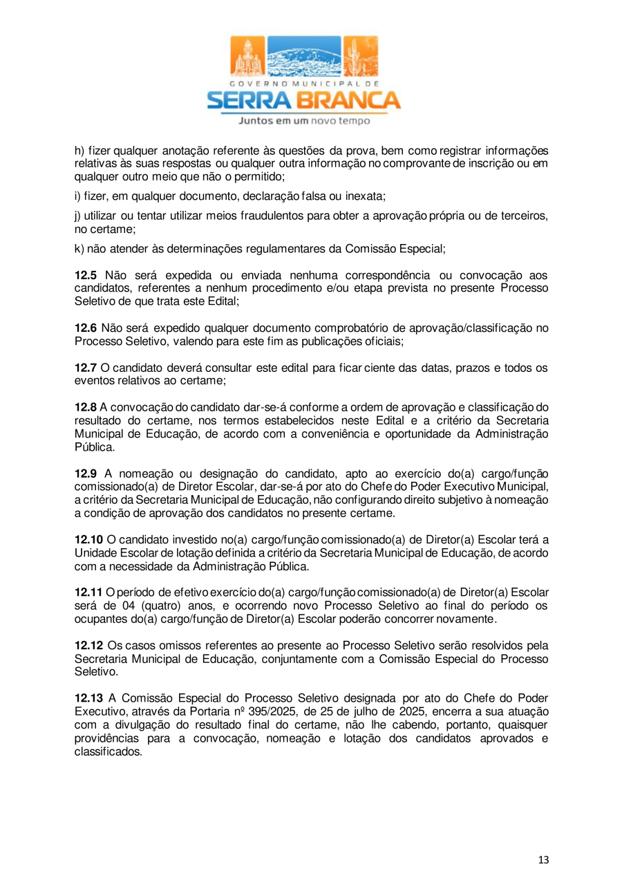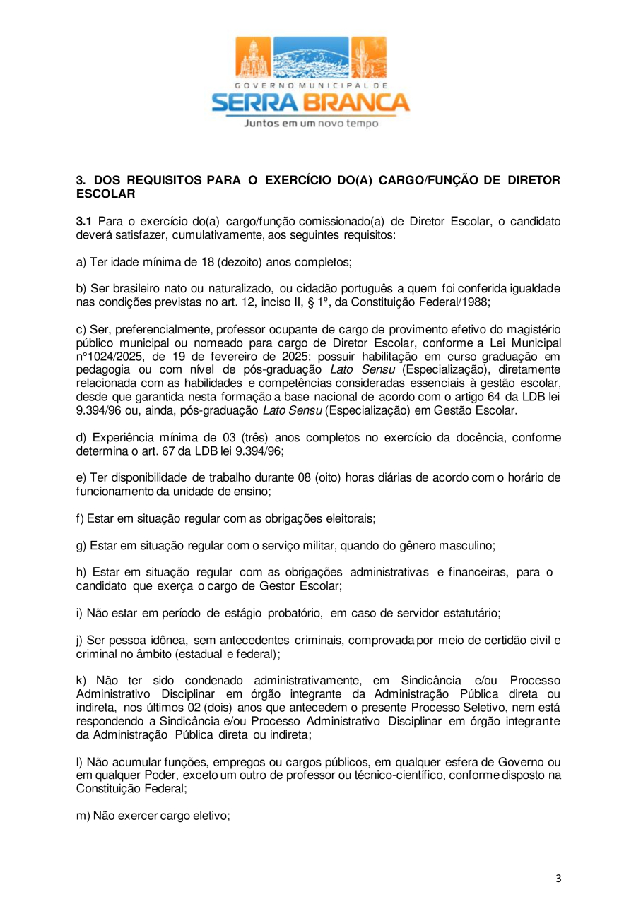 EDITAL DO PROCESSO SELETIVO PARA O CARGO/FUNÇÃO COMISSIONADO(A) DE DIRETOR(A) ESCOLAR DAS UNIDADES ESCOLARES DA REDE PÚBLICA MUNICIPAL DE ENSINO