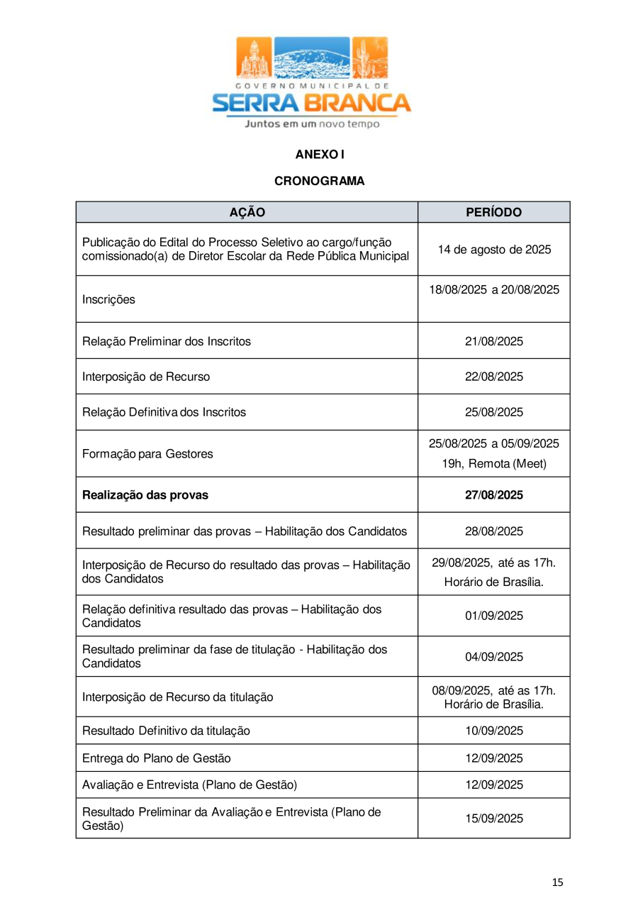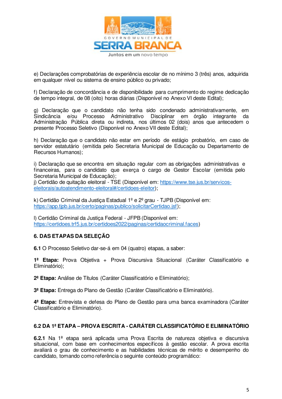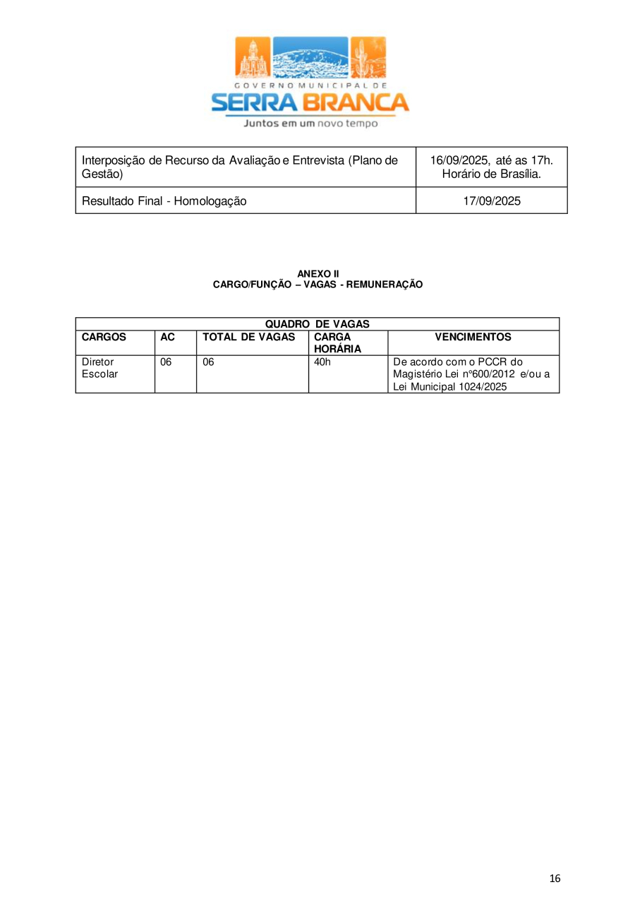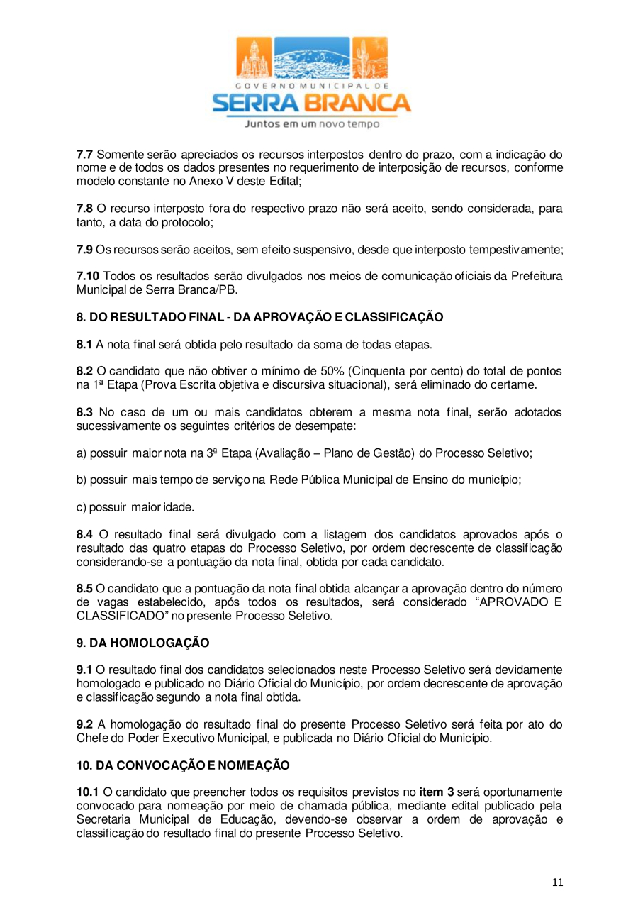 EDITAL DO PROCESSO SELETIVO PARA O CARGO/FUNÇÃO COMISSIONADO(A) DE DIRETOR(A) ESCOLAR DAS UNIDADES ESCOLARES DA REDE PÚBLICA MUNICIPAL DE ENSINO