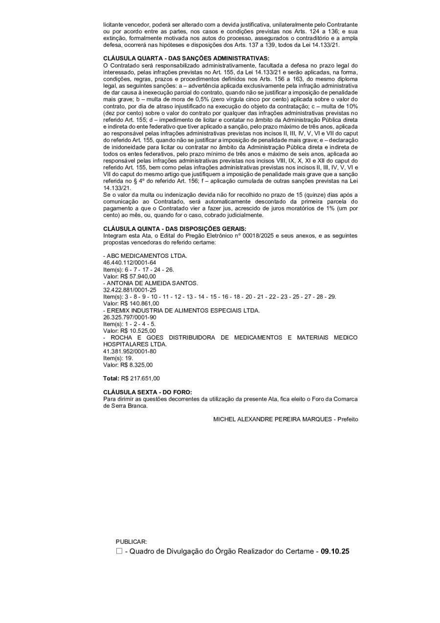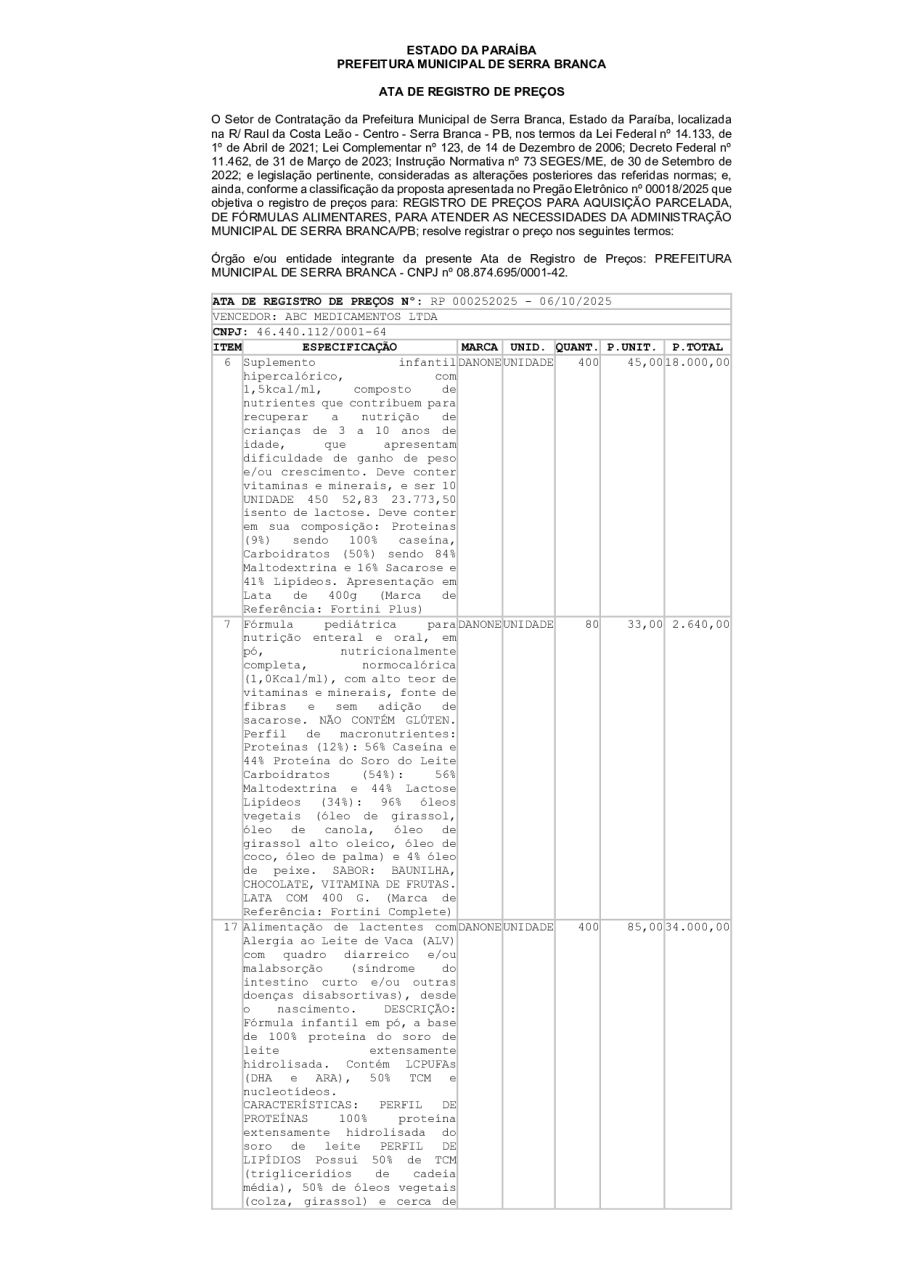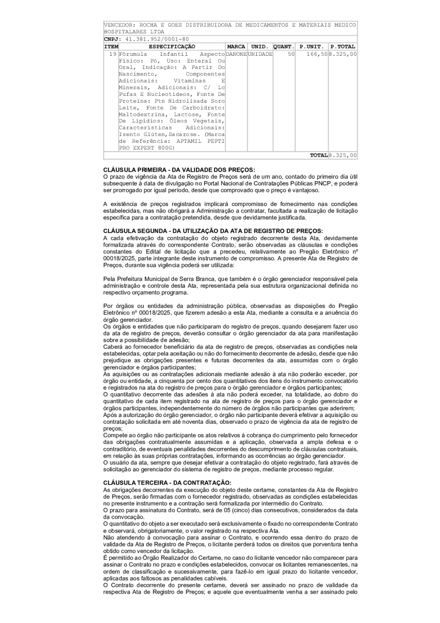 ATA DE REGISTRO DE PREÇOS PREGÃO ELETRÔNICO 00018/2025