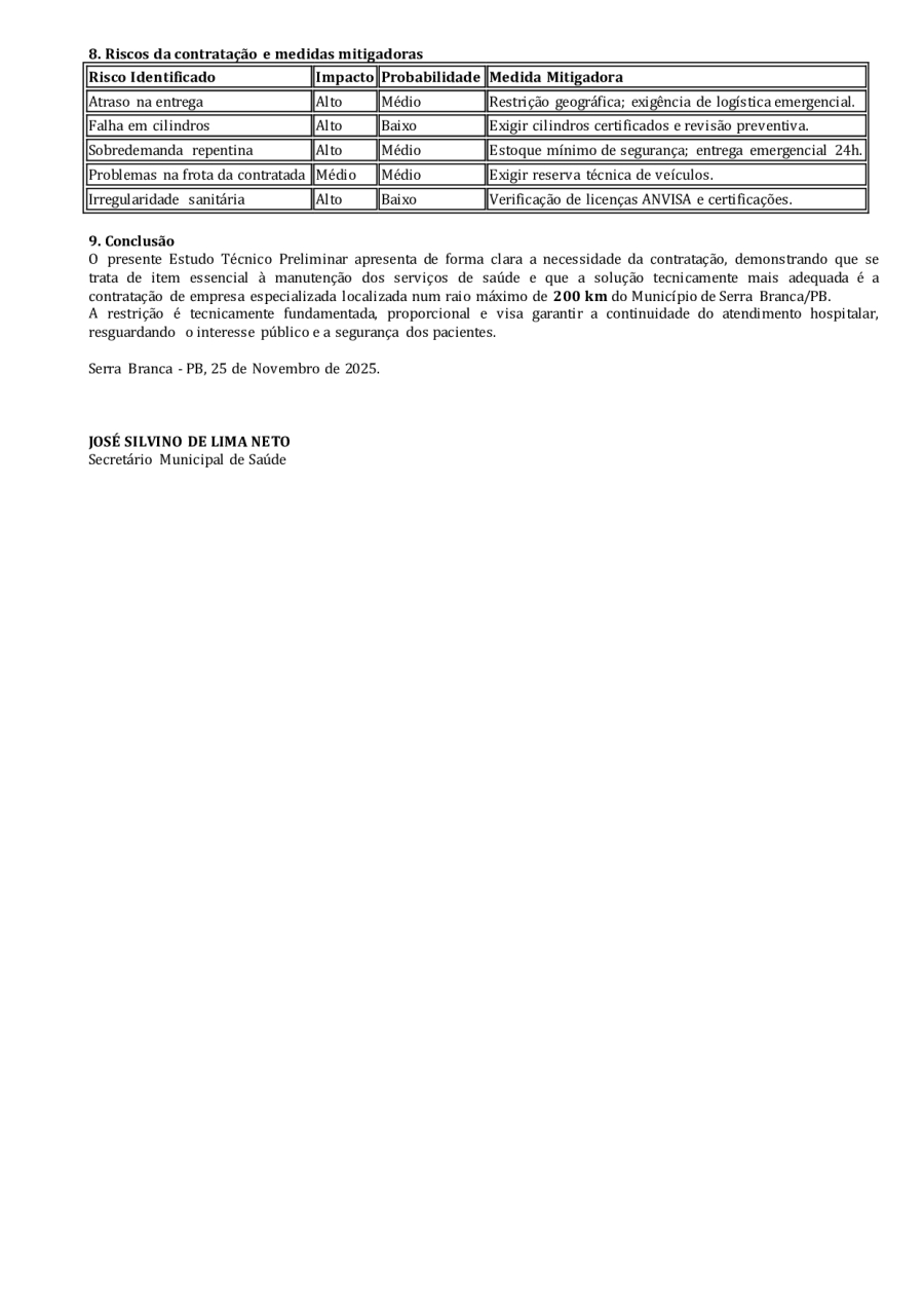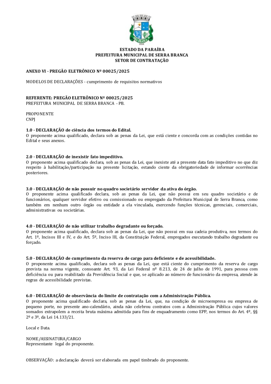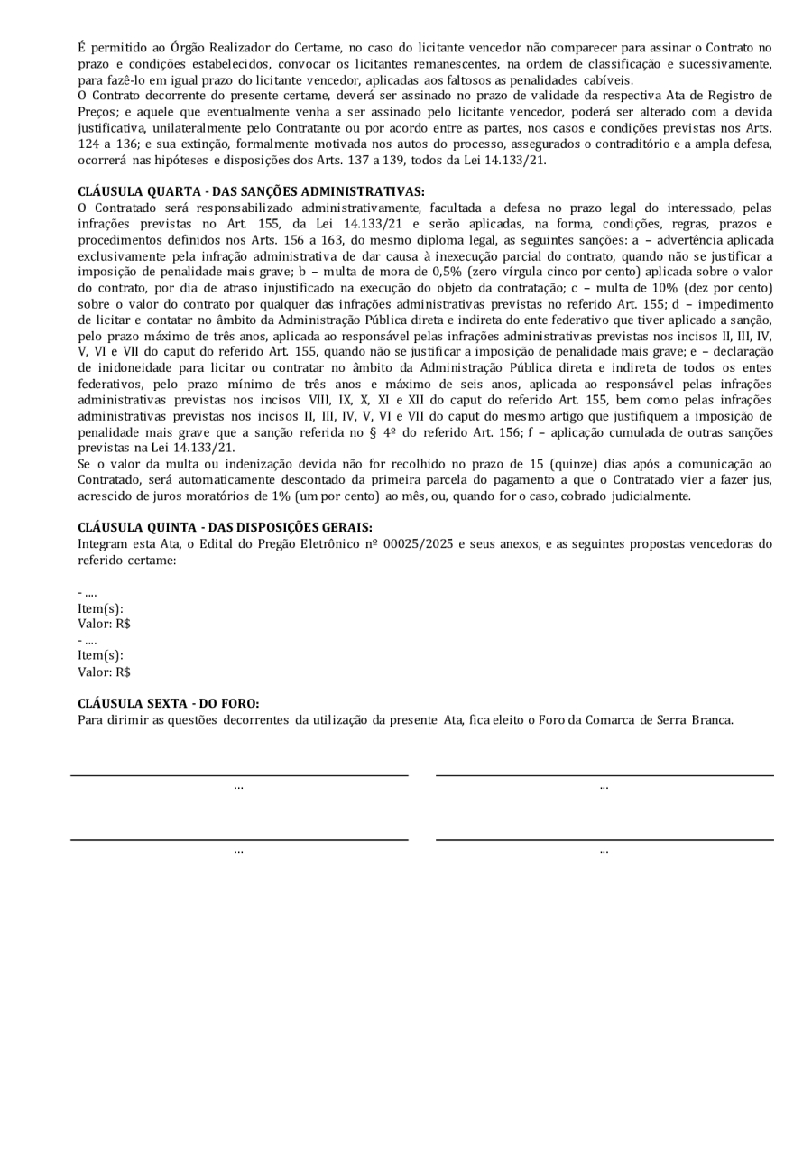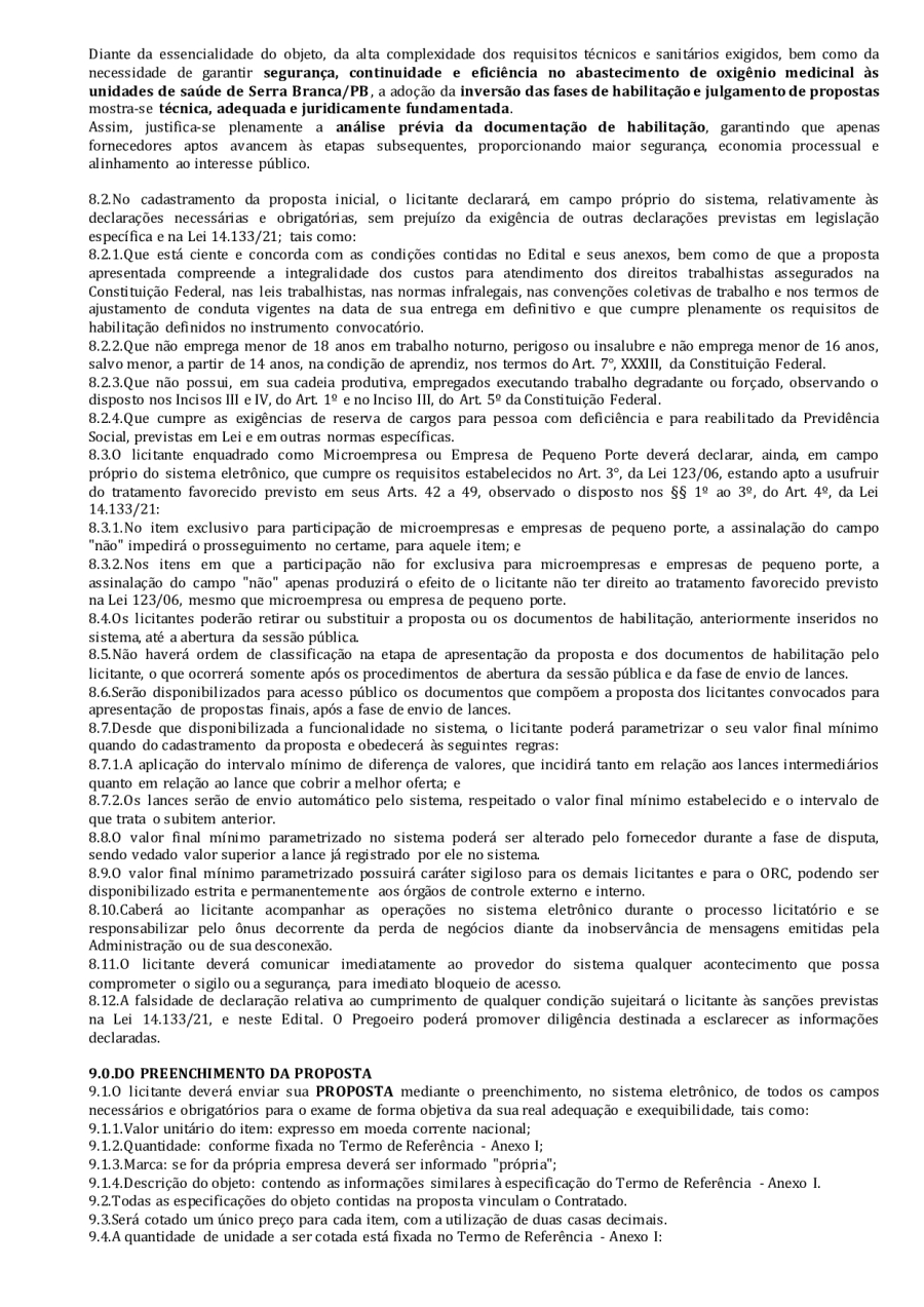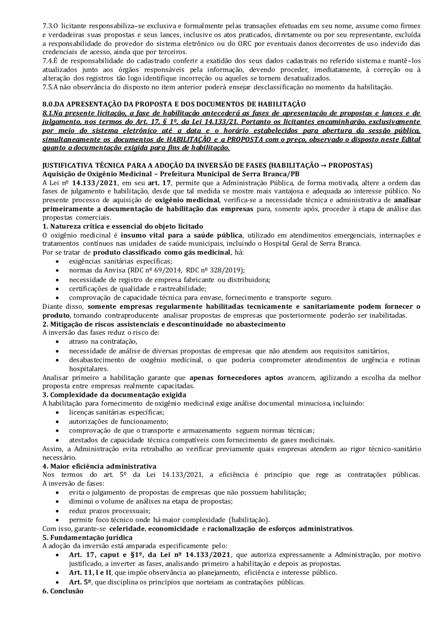 EDITAL PREGÃO ELETRÔNICO 00025/2025 – REGISTRO DE PREÇOS PARA AQUISIÇÃO DE OXIGÊNIO MEDICINAL, PARA ATENDER AS NECESSIDADES DA SECRETARIA DE SAÚDE DE SERRA BRANCA/PB.