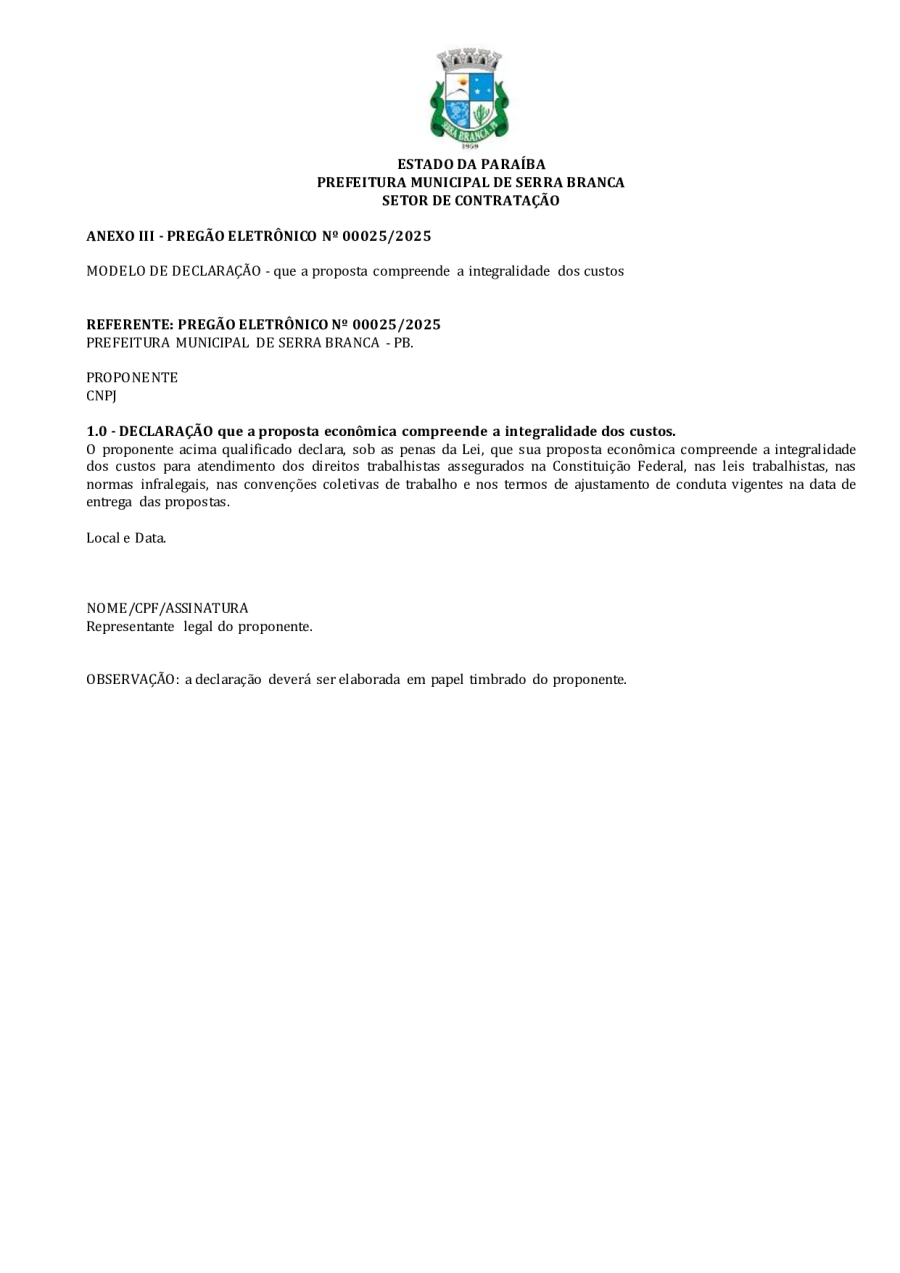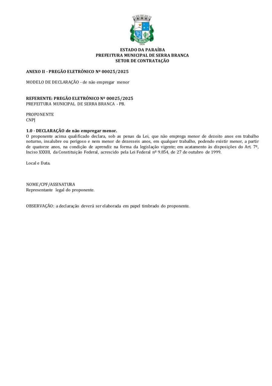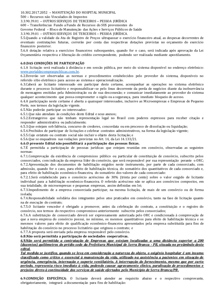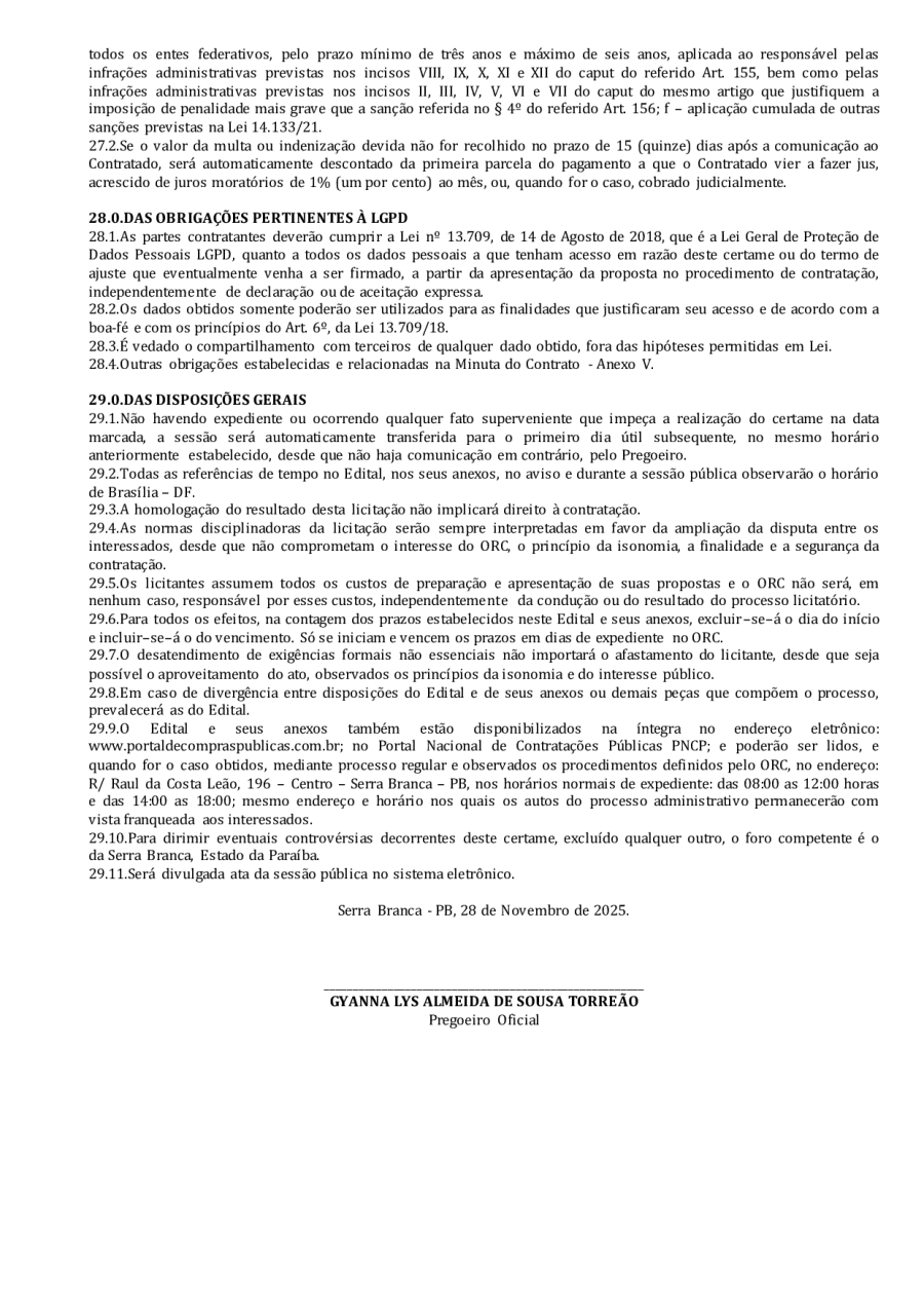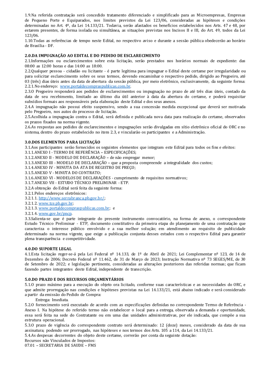 EDITAL PREGÃO ELETRÔNICO 00025/2025 – REGISTRO DE PREÇOS PARA AQUISIÇÃO DE OXIGÊNIO MEDICINAL, PARA ATENDER AS NECESSIDADES DA SECRETARIA DE SAÚDE DE SERRA BRANCA/PB.